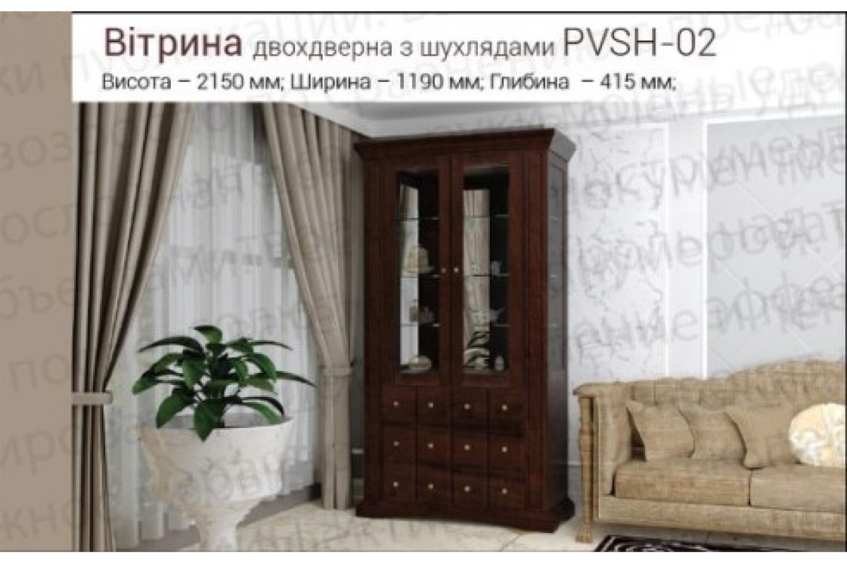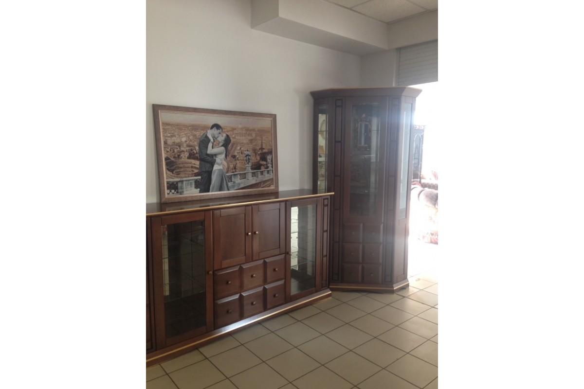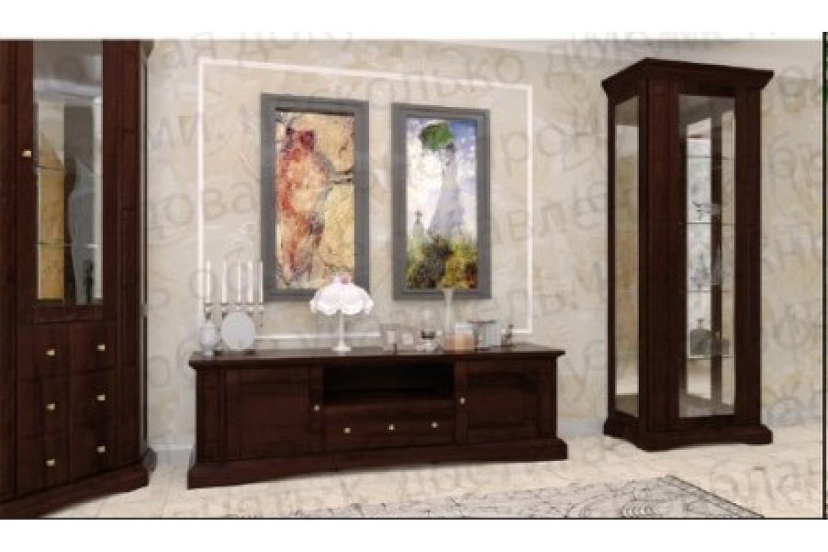 Пример композиции: витрина 1-дв.-2шт., тумба под ТВ. Также могут быть витрины 2-х дв., угловые, комоды посудные, этажерки