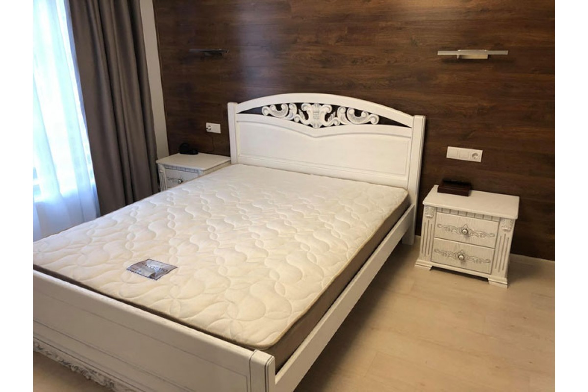 Кровать комплектуется тумбами, комодами, шкафами
