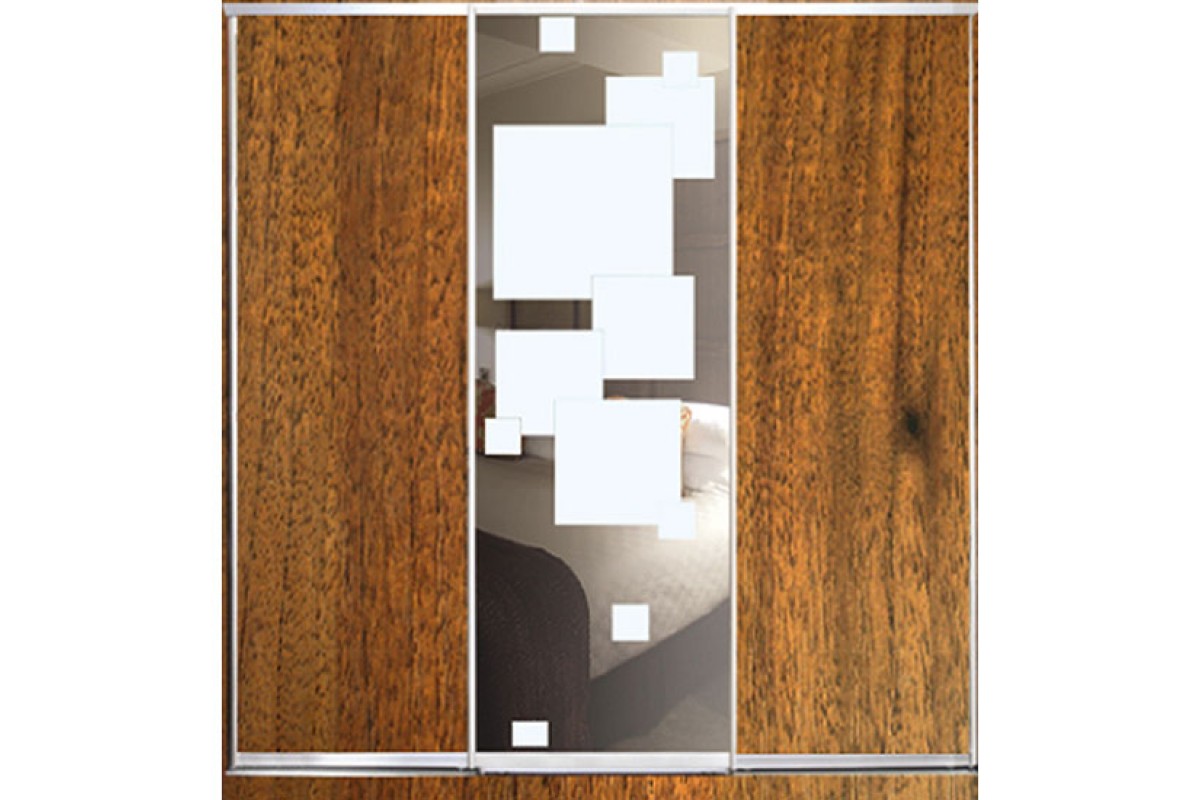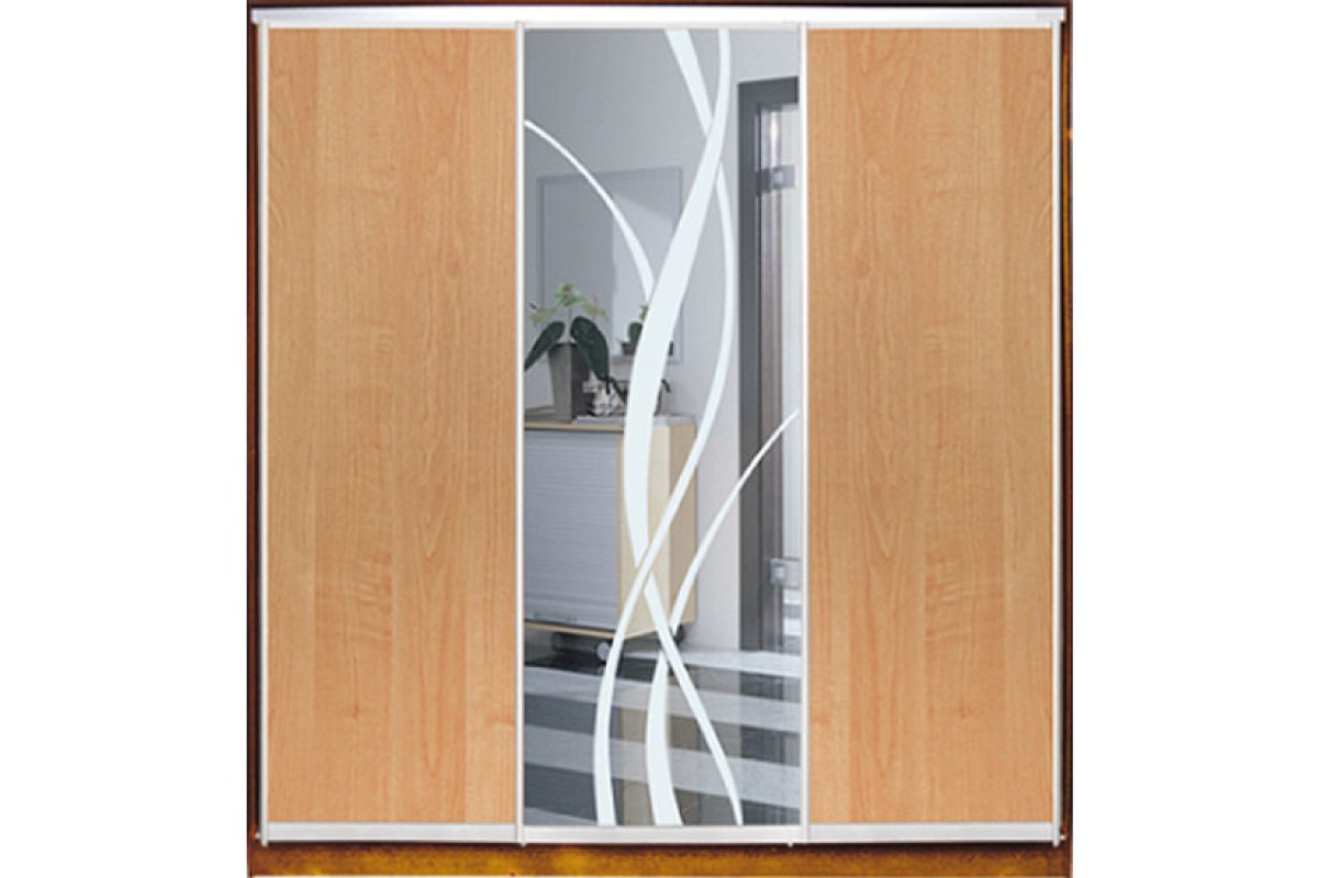 Шкаф-купе Стандарт 3-х дверный ДСП/Зеркало с рисунком пескоструй/ДСП