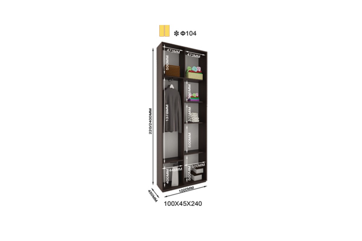 Цена указана за шкаф-купе шириной 1000 мм, который включает в себя зеркальные или ДСП фасады (на выбор), корпус, всё внутреннее наполнение, фурнитуру, а также комплектуется качественной алюминиевой раздвижной системой (профиль Элит серебро).