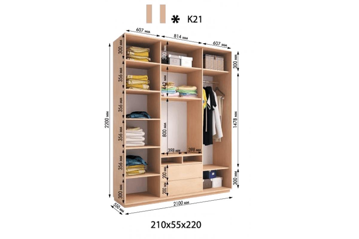 Вы можете заказать этот шкаф высотой от 2100 мм до 2400 мм (с шагом 10 мм)
