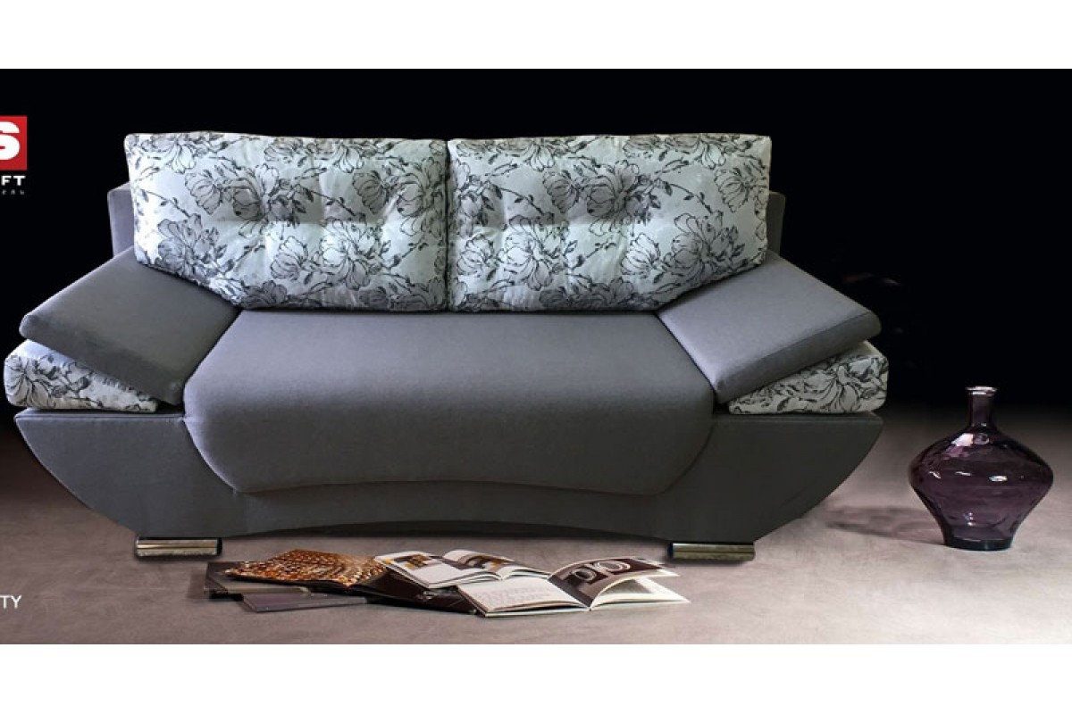 Сочетание мягкой теплой ткани и твердого холодного металла делает этот диван стильным и уютным. Выполнен на пружинных блоках. Есть ниша для белья,состоящая из двух секций. Прекрасная спальная часть.
