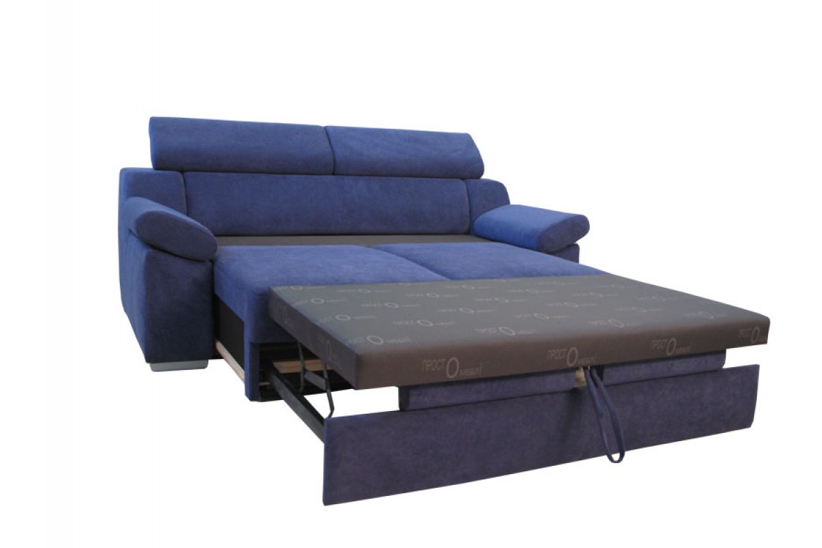 Тип раскладки: Выкатной тройной, раскладывается в три этапа: под спальным местом передняя часть на колесиках выдвигается вперед и приподнимается вверх - по типу раскладки Дельфин, потом дополнительно выдвигается вперед, изголовье может опускатся и подниматся вверх, фиксируется в нескольких положениях.
