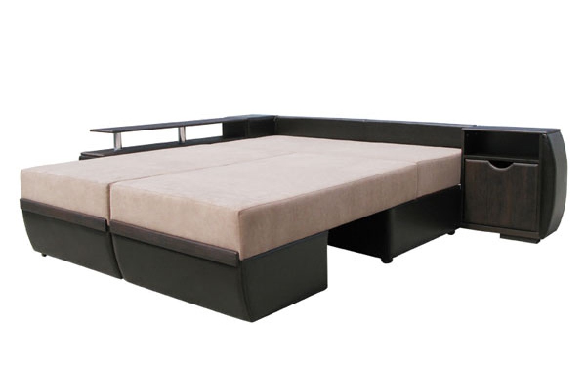 При раскладке «Еврокнижка» сидение выкатывается на колесиках вперед и задняя спинка укладывается вниз. С «Пошаговым механизмом раскладки» сидение по круговой амплитуде шагает вперед, а затем как и при раскладке Еврокнижка опускается вниз задняя спинка. Угол с пошаговым механизмом раскладки дороже аналогичного угла с раскладкой Еврокнижка. В обоих типах раскладки сидение вдоль длинного подлокотника поднимается вверх. Под сидением расположена дополнительная бельевая ниша.