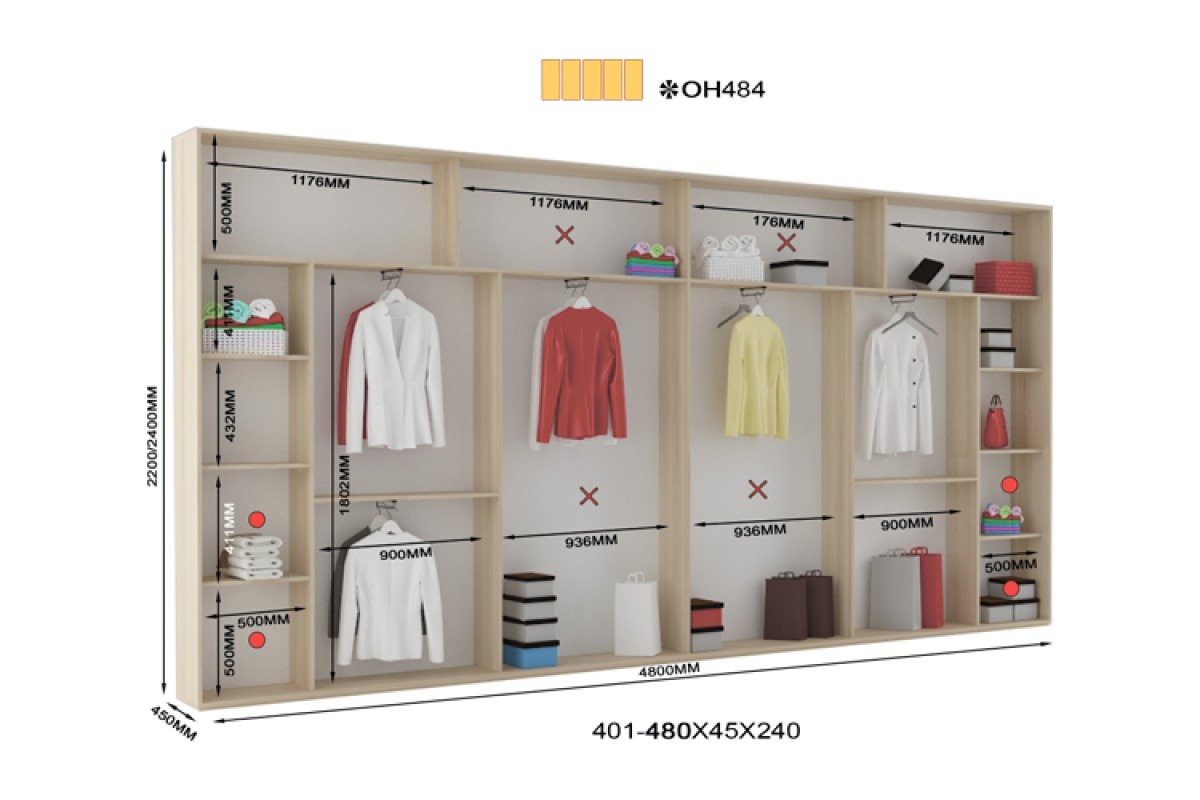 Вы можете заказать этот шкаф шириной от 4000 мм до 5000 мм (с шагом 10 мм).