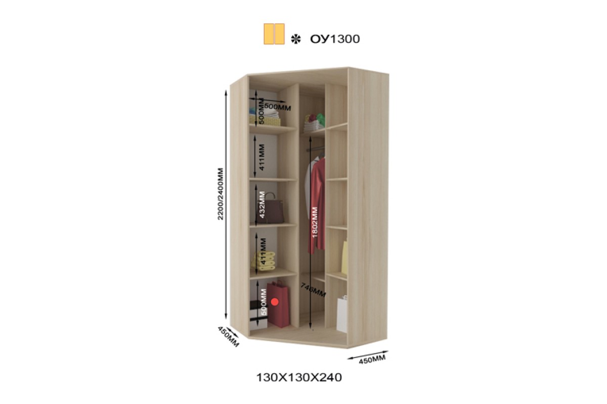 Шкаф-купе угловой ОУ1300-1300-2400